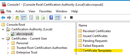 - Right-click Certificate Templates and select New >Certificate Template to Issue.