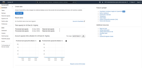 DynamoDBin the search box at the top of the AWS Management Console. - Navigate to the main page of the DynamoDB service.