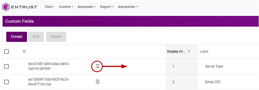 - Reordering a custom field does not change the Display Order column value.