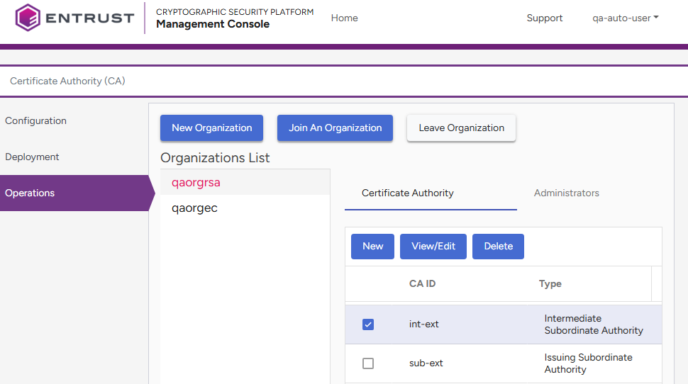 5. Under Organizations list, select the organization to which the intermediate or issuing CA belongs.
