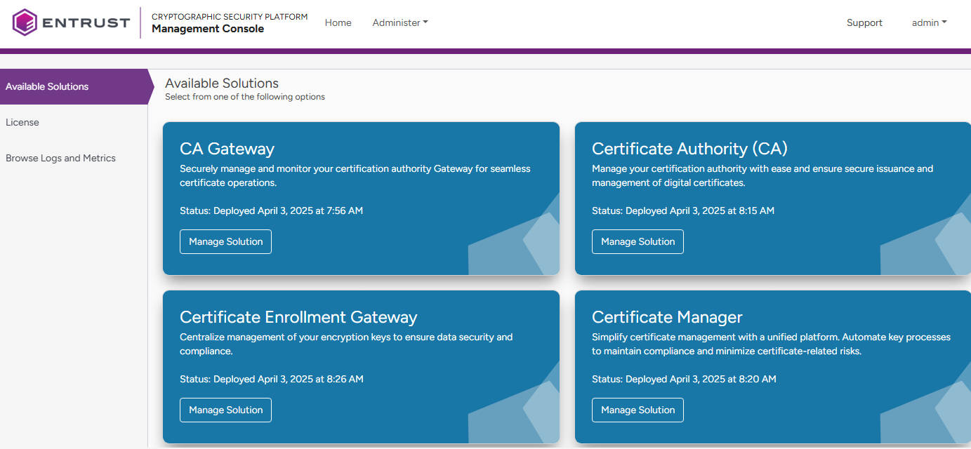 See below for configuring and deploying the Certificate Authority solution with the Management Console.