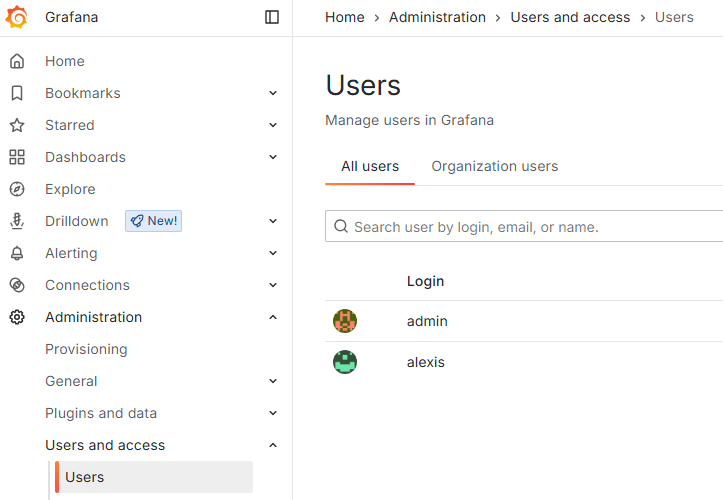 adminusername andchangemepassword. - Select Administration > Users and access > Users in the sidebar.