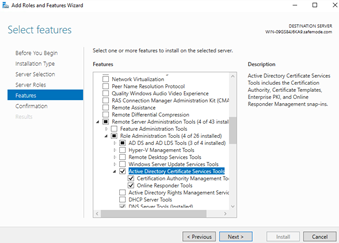- Expand Remote Server Administration Tools > Role Administration Tools, then select Active Directory Certificate Services Tools.