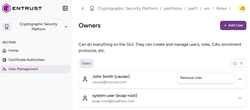 • Click the three dots to the right of a user, and select Remove User.