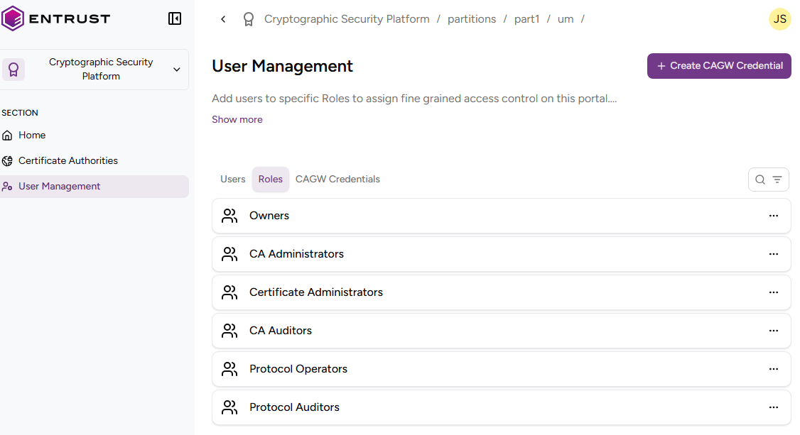 Users with this role can perform the following operations on certificate authorities.