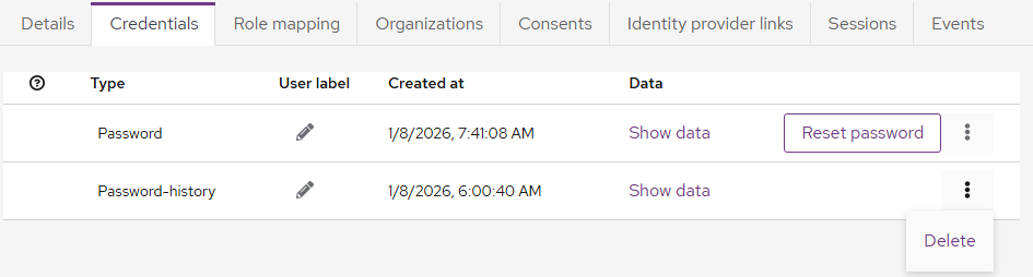 - Click the three horizontal dots for Password-history and select Delete to remove the password history.