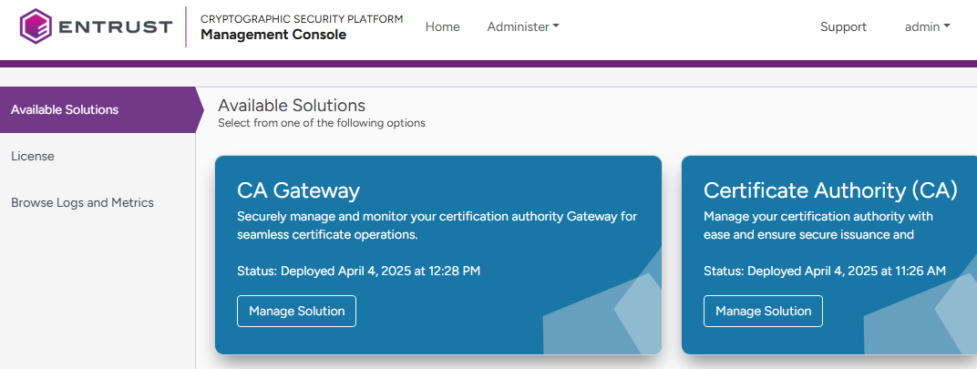 Cryptographic Security Platform provides a Grafana portal to browse logs and metrics on the internal services and the installed Entrust solutions.