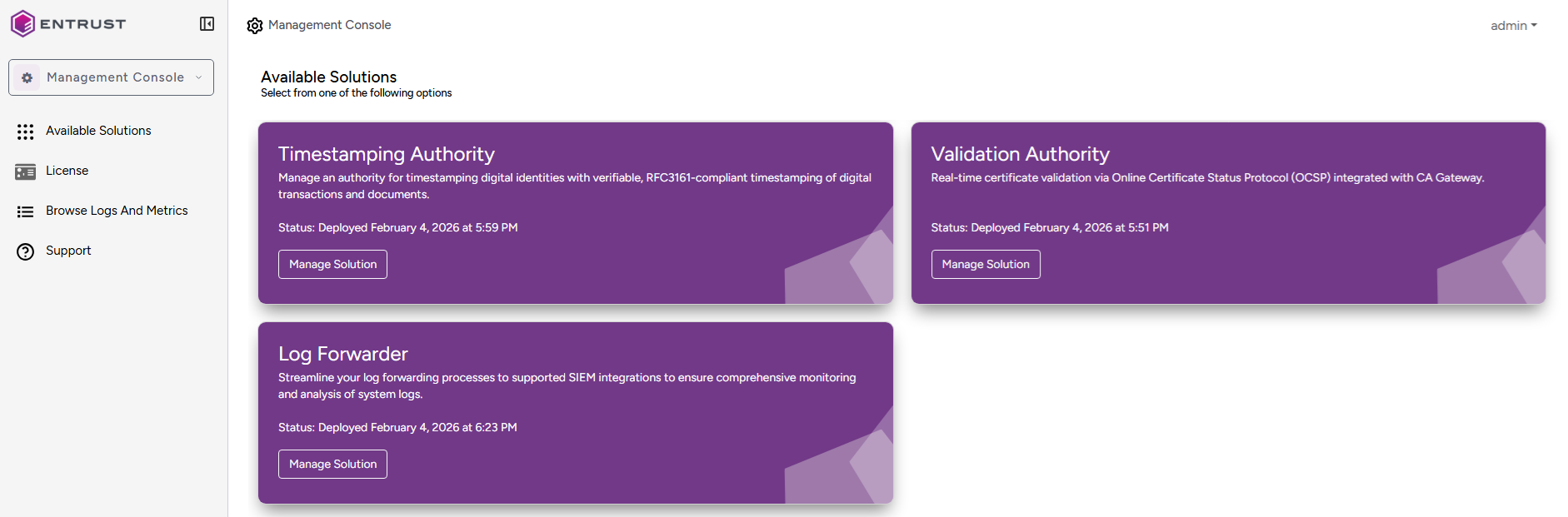 PKI Hub provides a Grafana portal to browse logs and metrics on the internal services and the installed Entrust solutions.