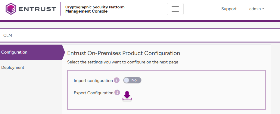 - Activate the Import configuration toggle switch if you want to import configuration settings from a file, such as a sample configuration file included in the product release.