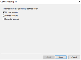 9. In the tree view, expand Console Root > Certificates – Current User > Personal.