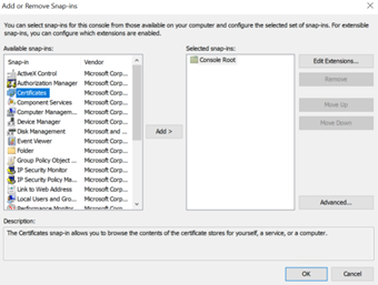 8. Click OK to close the Add or Remove Snap-ins dialog box.