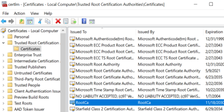 5. In the tree view, expand Certificates – Local Computer > Trusted Root Certification Authorities > Certificates.