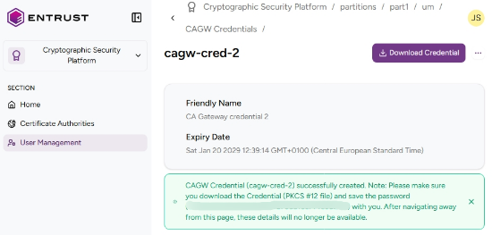 See below for generating and downloading a CAGW (CA Gateway) credential in PKCS#12 format.