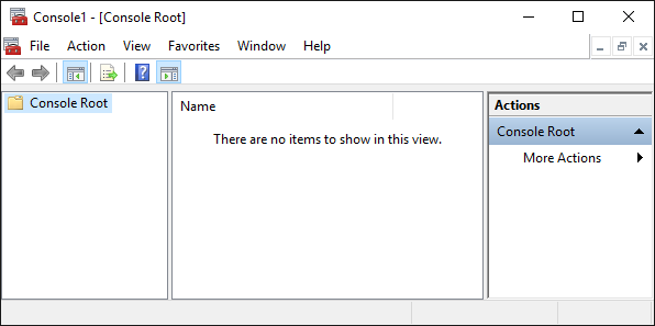 The Microsoft Management Console appears. - Select File > Add/Remove Snap-in.
