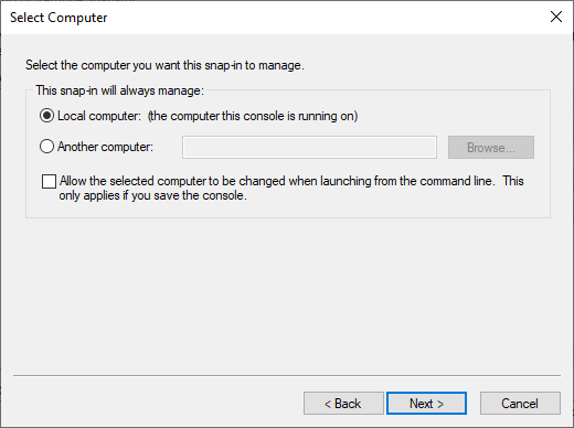 The Select Computer dialog box appears. - Select Local computer.