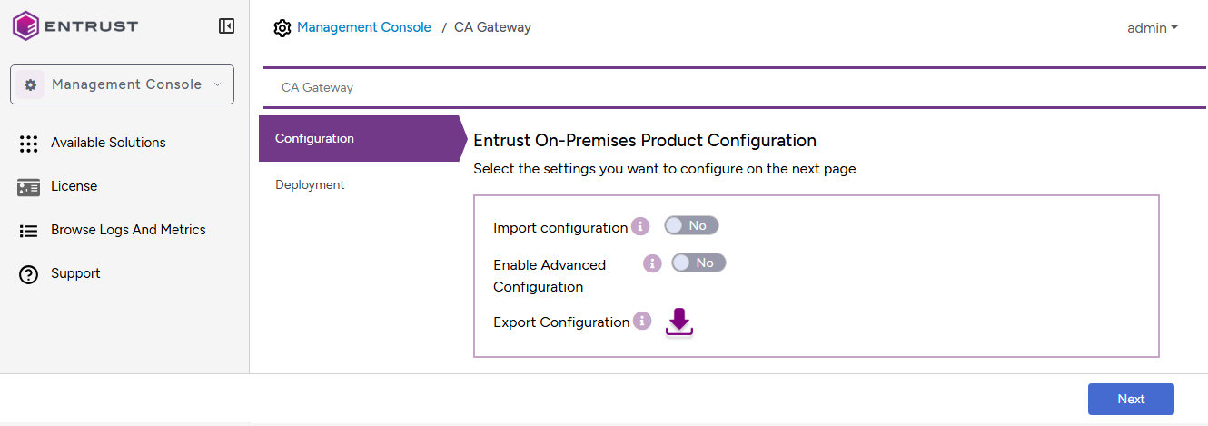 - Toggle Enable Advanced Configuration if you want to configure the full set of configuration parameters supported by the solution.