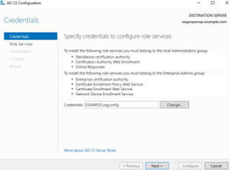 The AD CS Configuration dialog box appears.