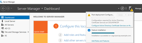 3. Select Notifications > Configure Active Directory Certificate Services on the destination server.