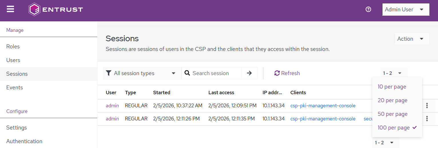 - Click Sessions in the sidebar of the user management console.