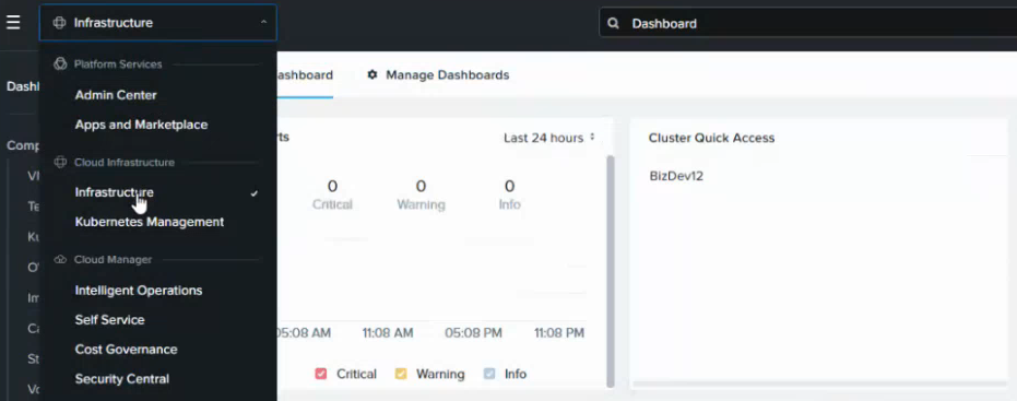 - Log into the Prism Central portal and select Infrastructure in the top-left menu.