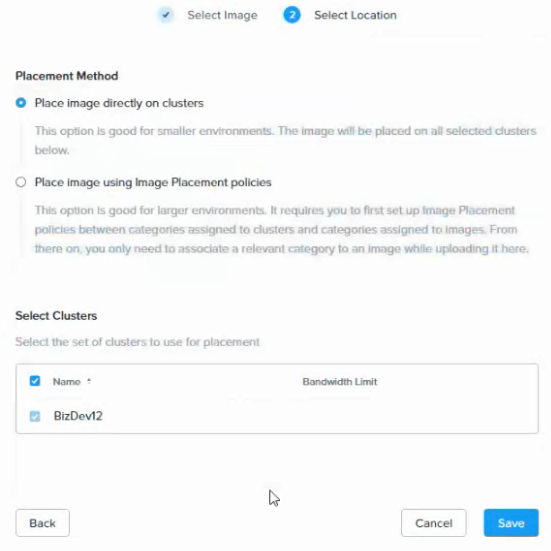 - Under Select Clusters, select the Nutanix cluster that will host the uploaded image.