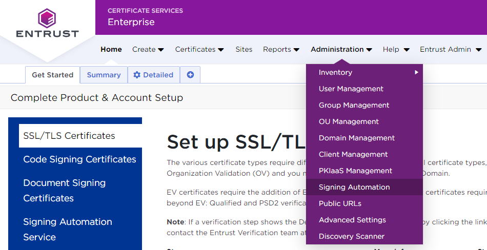 Download your Signing Automation License from the Entrust Certificate Services web portal.